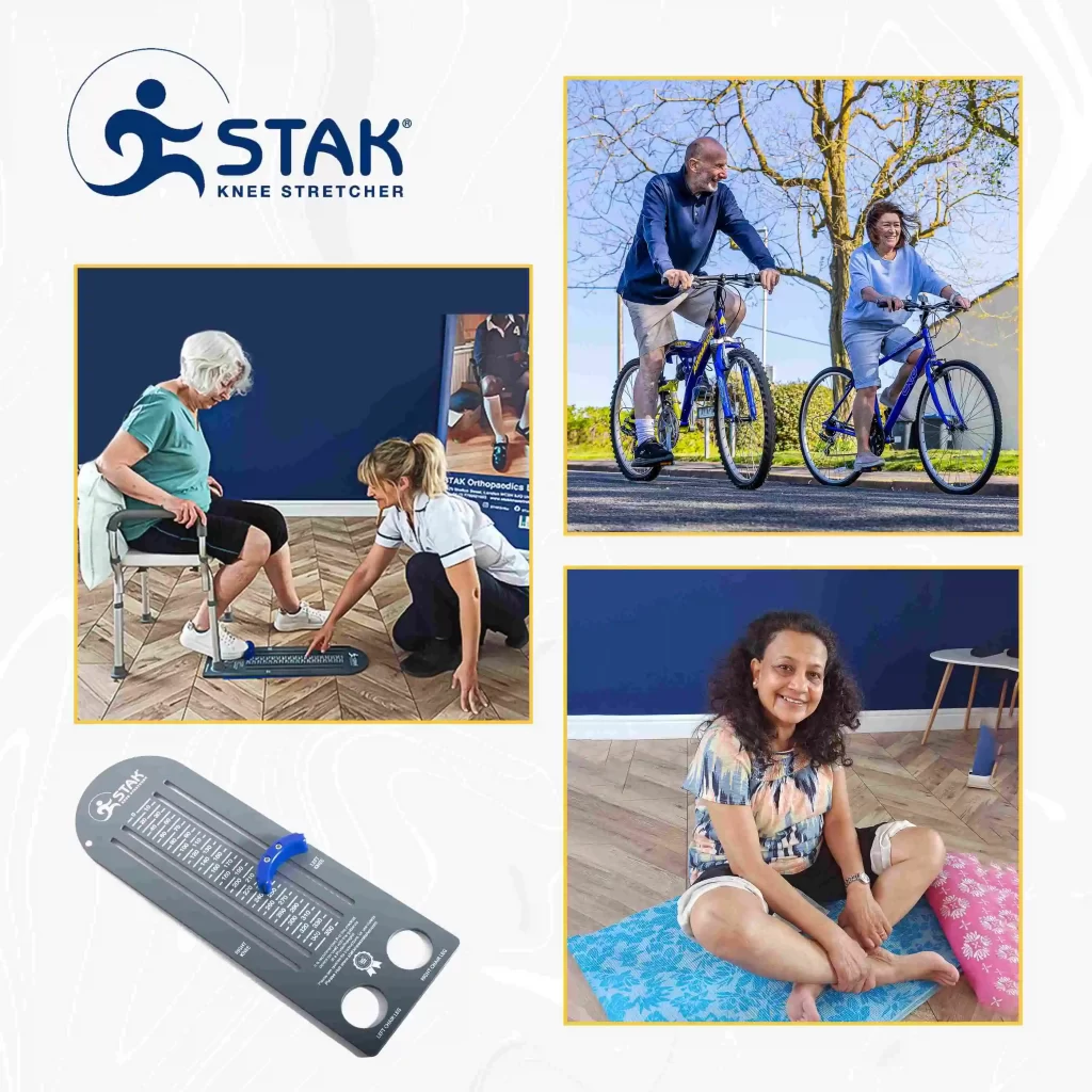 The STAK is a home treatment device designed to help patients regain knee range of movement and reduce stiffness and pain following knee surgery. It offers intense stretching capabilities that break down scar tissue, providing better results than standard physio exercises.